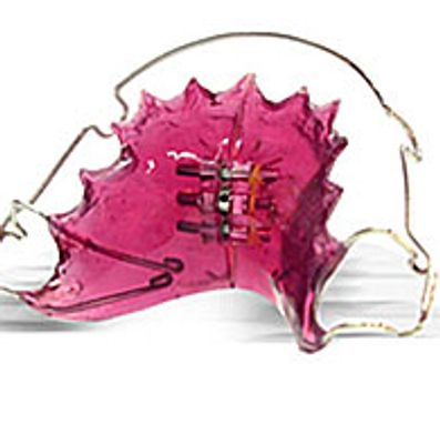Acrylic removable braces are removable appliances made at an orthodontic laboratory using an impression of the patient’s mouth, and consist of wire clasps attached to an acrylic base that fits into the mouth. Wire springs or screws may also form part of the brace and these components move the teeth into their correct positions. The acrylic comes in a choice of colours